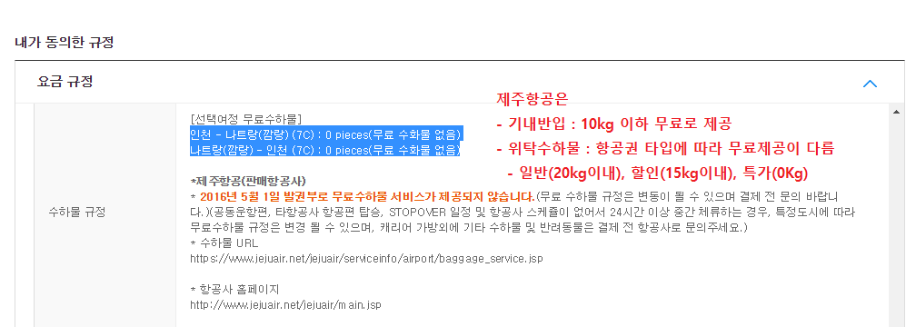 - 저가항공사 특가항공권은 위탁수하물이 무료로 제공안된다