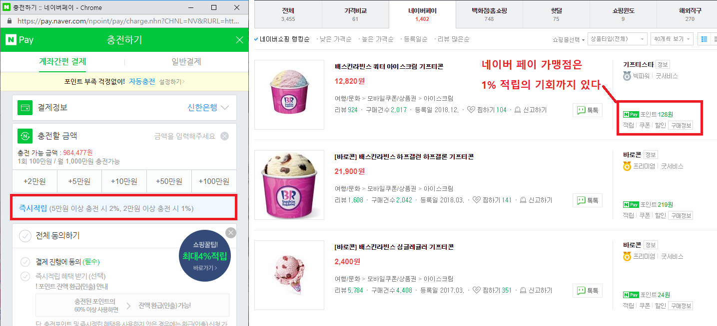 추가 꿀팁을 알려준다면, 네이버 쇼핑에서 검색할때 네이버페이 결제가능한 업체를 찾아서 결제하는게 효율이 좋다.