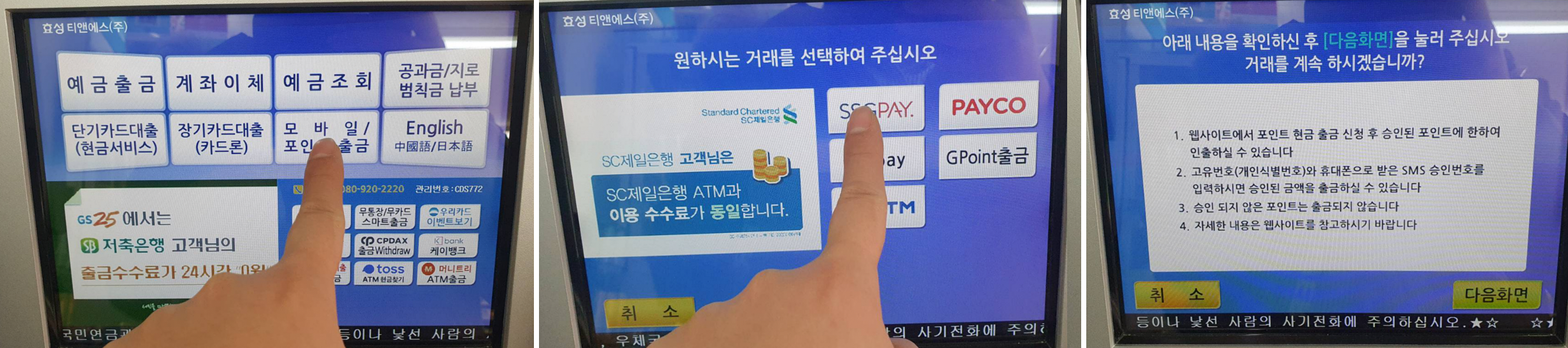 효성티앤에스 ATM에서 SSG머니 출금