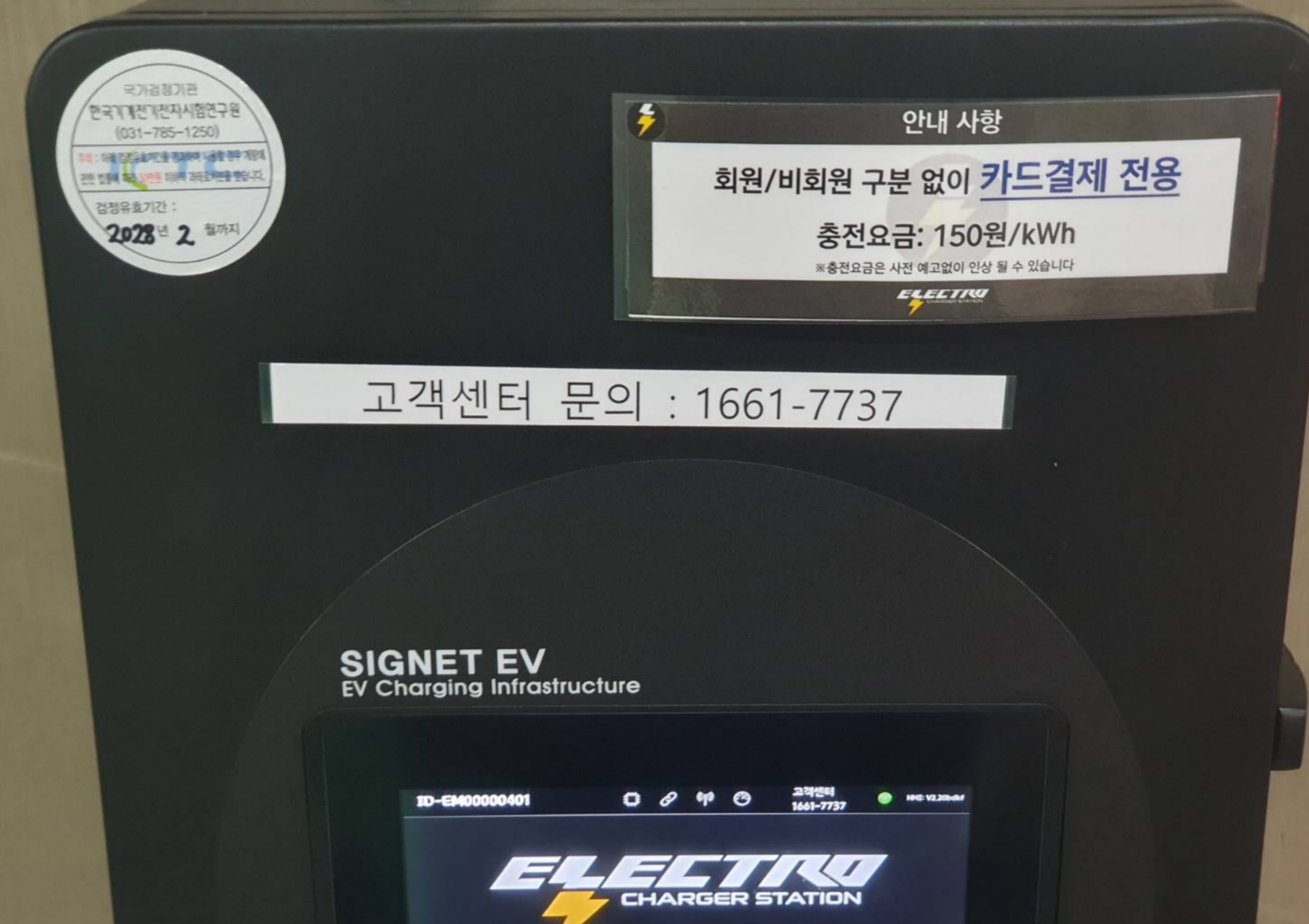 놀라운건 회원/비회원 구분없이 카드결제시 충전요금이 150원/kWh 라는점이다. 이 가격이면 왠만한 아파트 단지의 충전소에서 프로모션가격보다 싼 가격이다. 카드결제로 가능해서 별도의 앱도 설치할 필요가 없다.