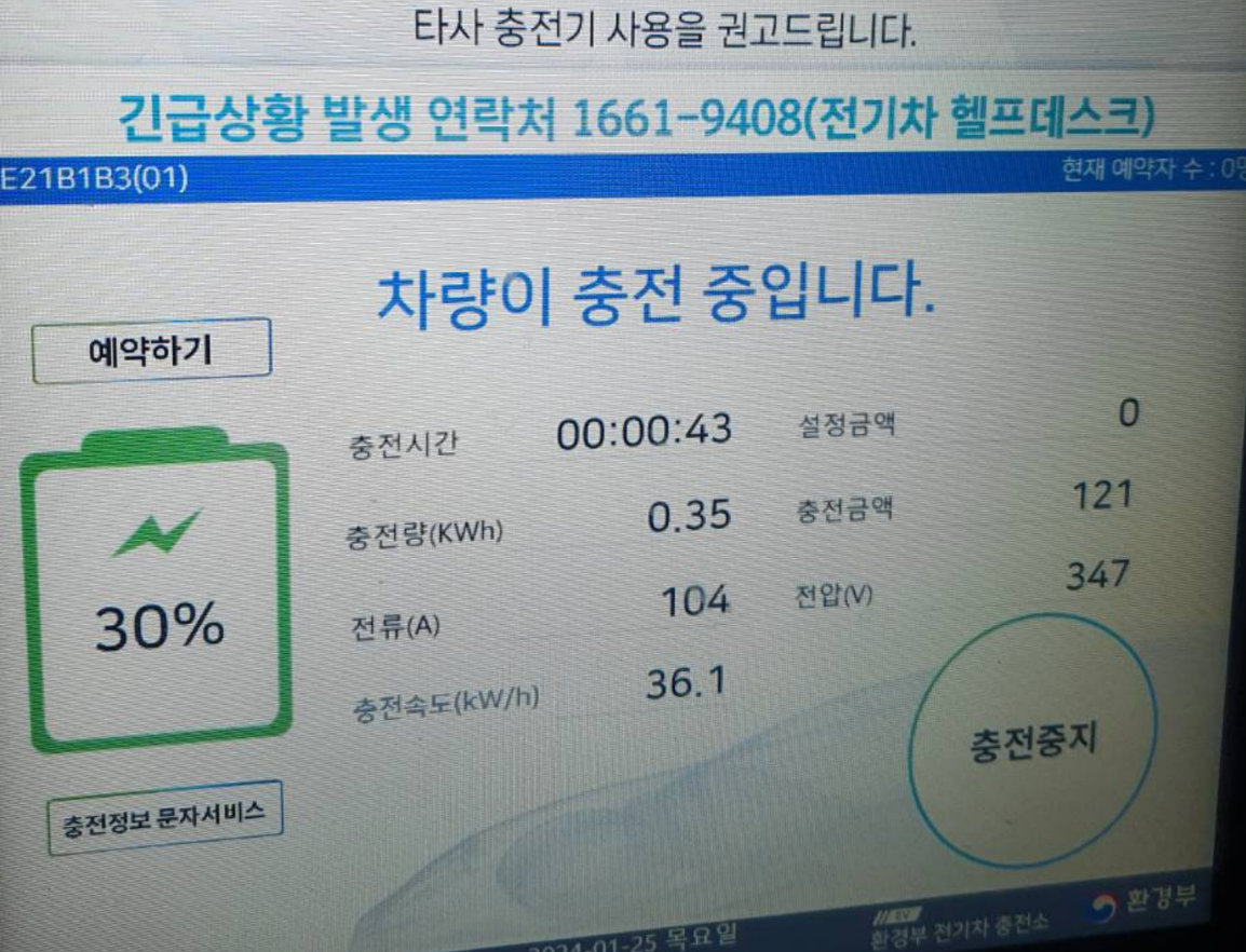 전기차는 이런 추운날에 배터리가 얼어서(?)인지 충전속도가 좀 안나는데 집에서 올때 배터리 예열을 하고 오고 테스트하긴했다 (해봤자 5분정도겠지만)