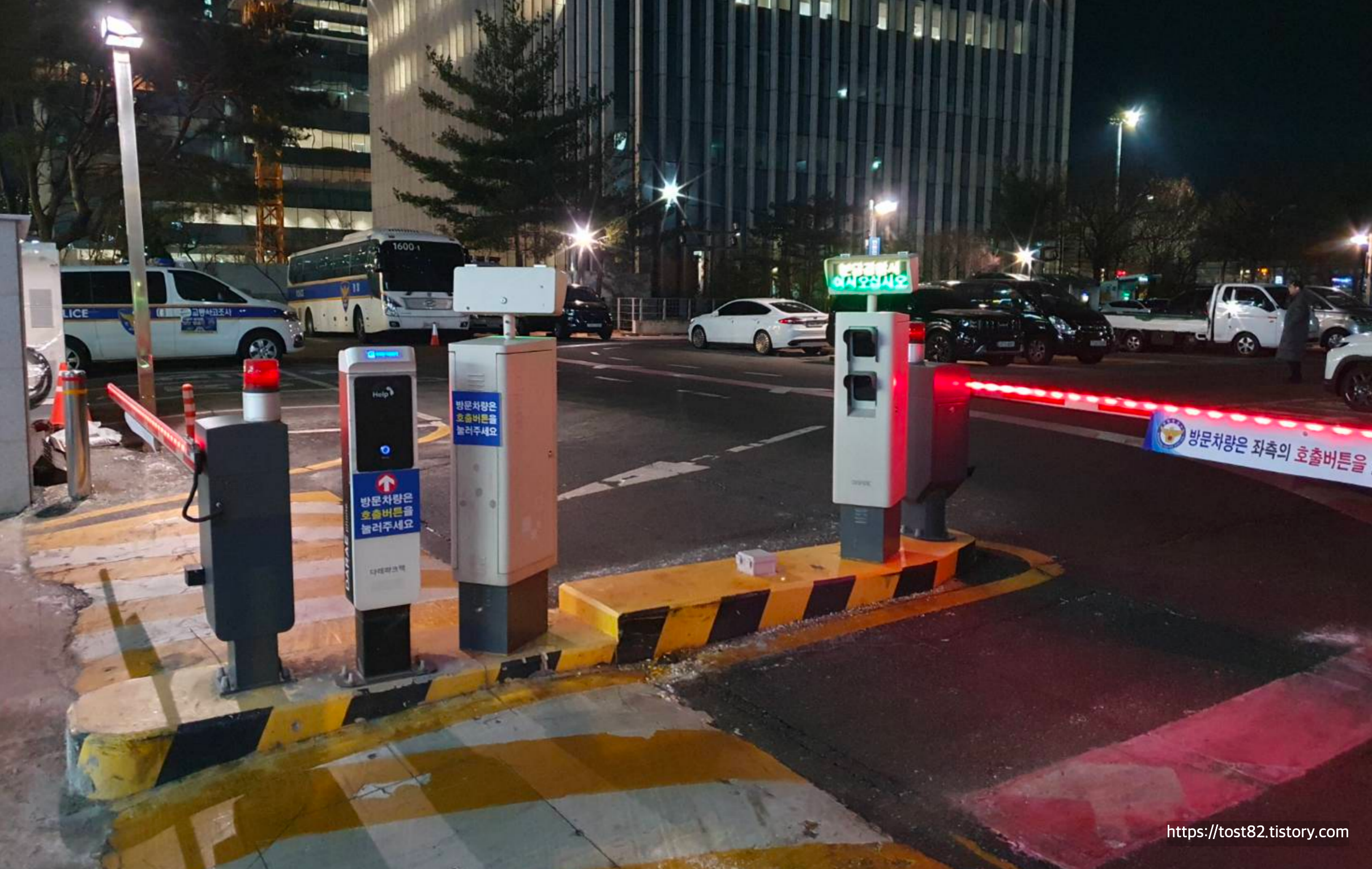 아침에는 보통 열려있고, 밤에 가면 닫혀있더라도 호출버튼을 눌러서 전기차 충전하러 왔다고 하면 열어준다. (쫄지말자)